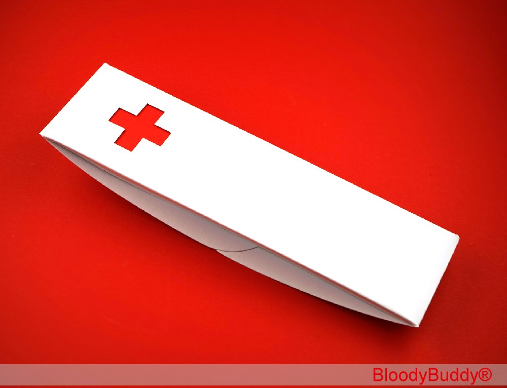Auf der Rückseite ist ein Kreuz / Pluszeichen ausgestanzt. Die Kartoneinlage kann wiederum in allen Standardfarben - ganz nach Kundenwunsch - realisiert werden.